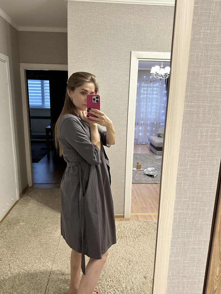 Практичный и невероятно удобный комплект в роддом для беременных и кормящих из 100% Хлопка, который состоит из ночной сороки и халата с запахом. Сорочка - оптимальной длины, выполнена из однотонной хлопковой ткани Премиального качества, на бретелях с регуляторами из декоративной резинки. Верх изделия разработан для максимального комфорта во время кормления грудью. Крайне привлекательно смотрится декоративная отделка кружевом. Халат с запахом, удобным поясом, боковыми карманами и рукавом 3/4. Длина - ниже колена. По низу рукавов - отделка эластичным кружевом. В боковом шве 3 петли для регулировки высоты пояса. Такой комплект, состоящий из халата и сорочки, ни в коем случае не останется без внимания. Вы сможете носить его и после беременности, ведь он невероятно удобный и универсальный. Характеристики: 100% хлопковая ткань Премиум; Обработка декоративным эластичным кружевом; Оптимальная длина изделий; Бретели с регуляторами; Комфорт во время кормления; Боковые карманы; 3 уровня регулировки высоты пояс
