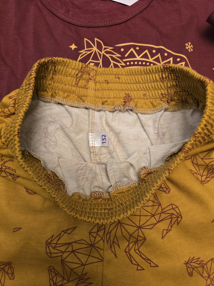 Приятный костюм,приобрела для всей семьи для фотоссесии,плотная резинка на штанах,соответствует   размерной сетке,дети довольны покупкой